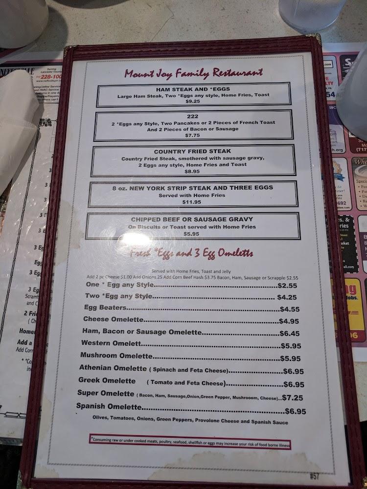 Welcome to Mount Joy Family Restaurant, your home away from home in the heart of Mount Joy, PA. Located at 307 W Main St, we offer a warm and inviting atmosphere perfect for families and groups alike. Indulge in our delicious breakfast, lunch, and dinner options featuring local specialties, excellent coffee, and mouthwatering desserts. Enjoy the convenience of takeout, delivery, or dine-in service, all while benefiting from our wheelchair-accessible facilities. With a wide selection of teas and comfortable seating, we cater to everyone, including the little ones with our child-friendly menu. Come experience the relaxed ambiance and memorable meals at Mount Joy Family Restaurant!
