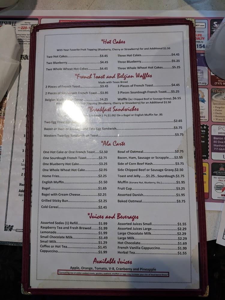 The menu at Mount Joy Family Restaurant features traditional American cuisine, focusing on simplicity. Start the day with fluffy pancakes or crispy bacon. Lunch brings homemade pizzas and sandwiches that guests rave about. Dinner highlights include roast beef over stuffing or hearty classic plates, satisfying every palate.